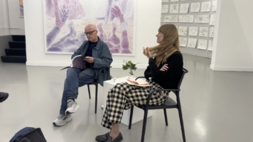 The works presented in Scent of Hypnosis at the Drawing Center Diepenheim have been developed over a long trajectory of life and work. Drawing established itself as the base of all of Slagboom’s work at a later stage in his practice. His approach carries through many of the ideas on color and space that existed in his earliest spatial works. His older drawings contain references to his personal life as a parent, and to the configuration of having children and working as an artist in a society that enforces ceaseless demands. This theme slowly progressed towards an abstract reflection on identity and physicality beyond commonly explored tropes. His first major solo exhibition of large-scale drawings took place in 2019 at the Vleeshal in Middelburg, curated by Julia Geerlings. There, the works were hung from the ceiling, weaving space and scale into Slagboom’s recognizable themes of sex and death. The subject of birth began to filter through his imagery in 2020 at a solo presentation at Bridget Donahue in New York. In Diepenheim, this subject has been expanded into expressions of infantile consciousness, free from societal conditioning, fresh from (or literally exiting) the vaginal canal.